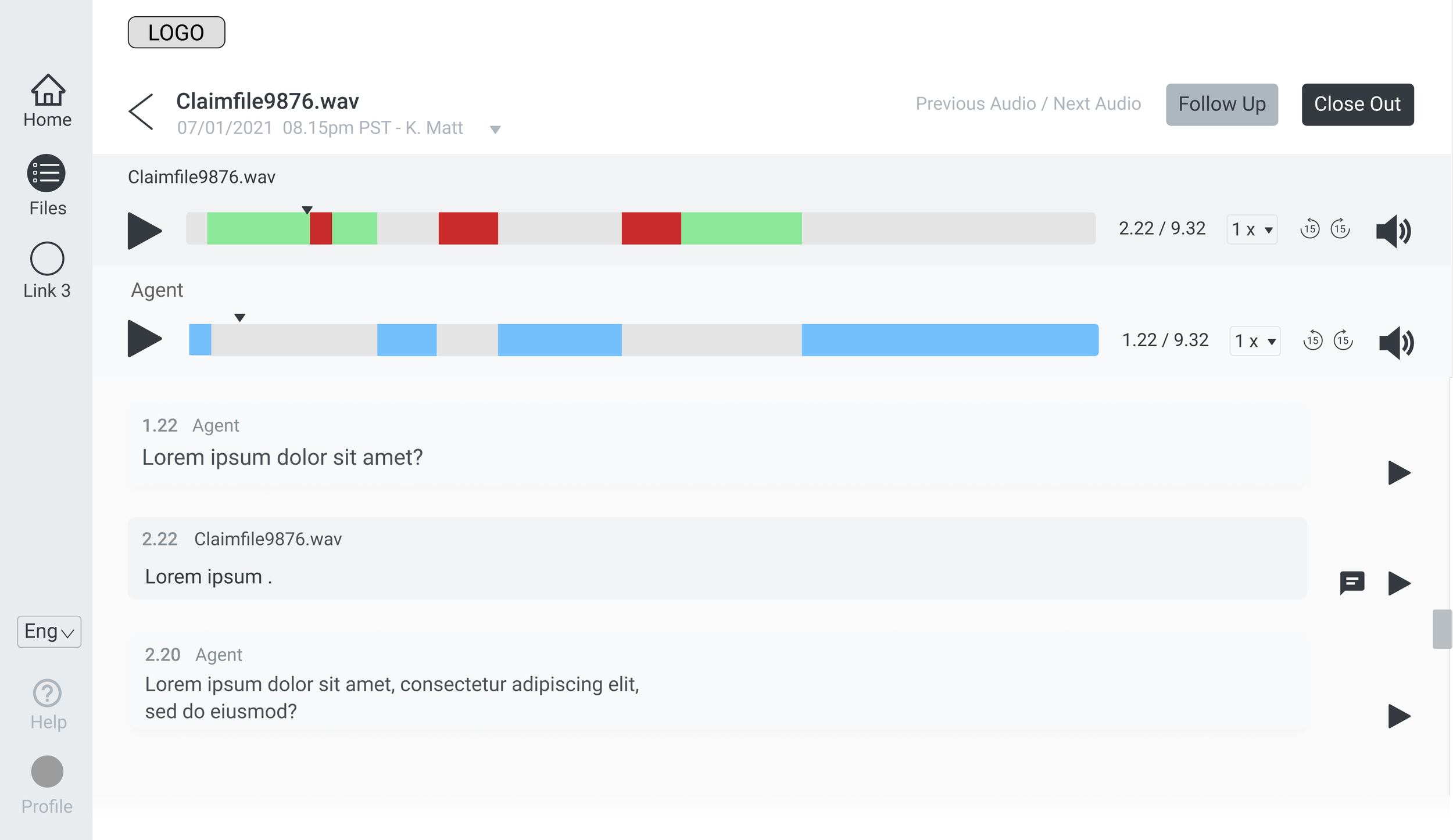Introduced separate audio tracks for agent and claimant calls, recognizing the dual source nature of conversations.