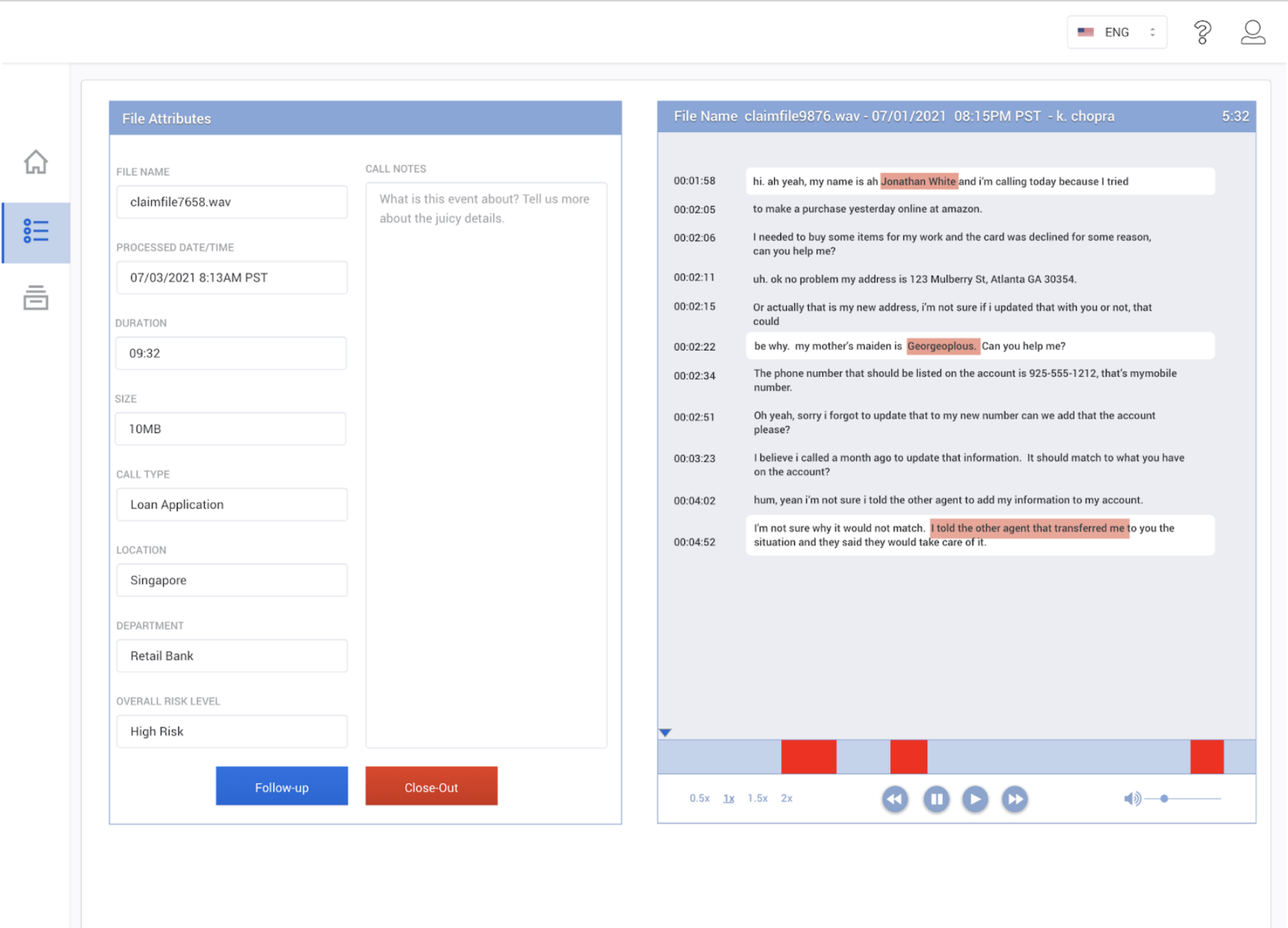 The product team aimed to introduce a new feature that identifies and highlights potential deception within agent-client conversations. This feature would analyze spoken dialogue and provide deception hints alongside the transcription. I was tasked with redesigning two existing wireframes to enhance the usability and learnability of this functionality, prioritizing improvements to the transcription screen.